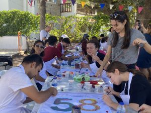 Bu yıl Maximiles Black The Bodrum Cup’ın geleneksel bayrak boyama festivali, 19 Eylül Salı günü yapıldı. Vakıf öğrencileri, gönüllü eğitmenler ve velileriyle birlikte sabahın erken saatlerinde okula gelerek yarış teknelerinin bayraklarını boyamaya başladı. Bir yandan müzik, bir yandan sohbet, velilerin yüzündeki paha biçilmez gülümsemeler, çocukların heyecanı, mutluluğu Maximiles Black The Bodrum Cup coşkusunu yaşatan ve somutlaştıran en güzel anlardı.